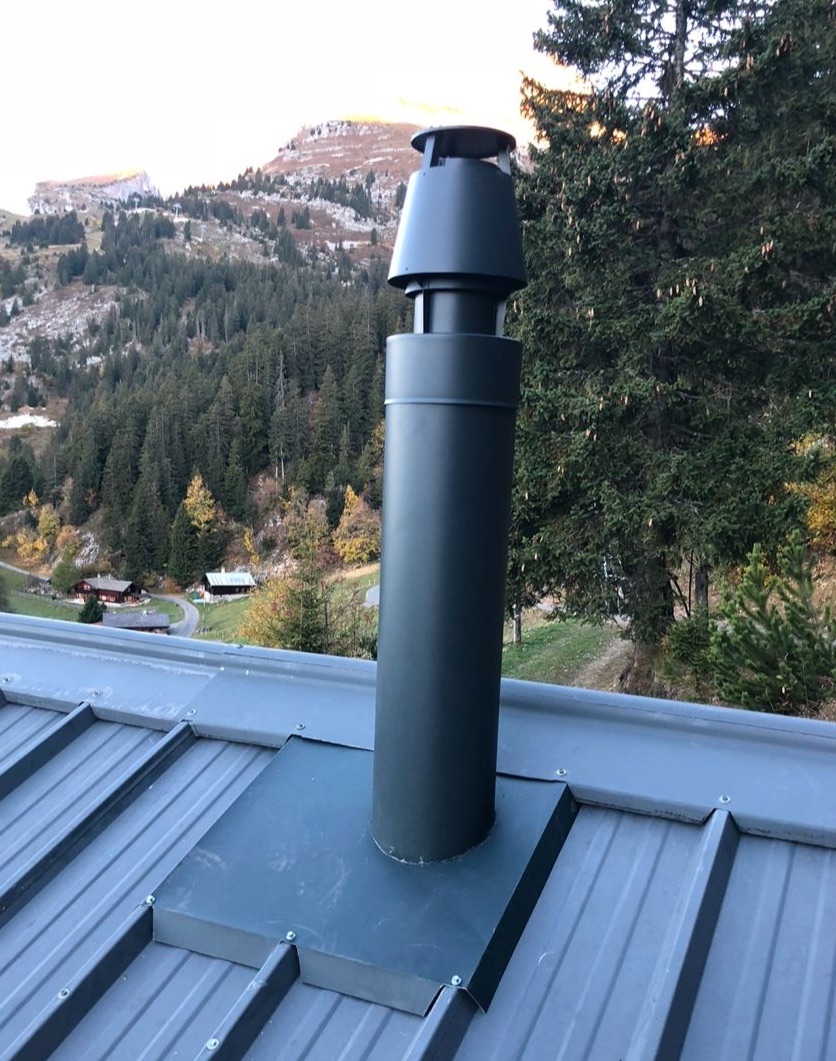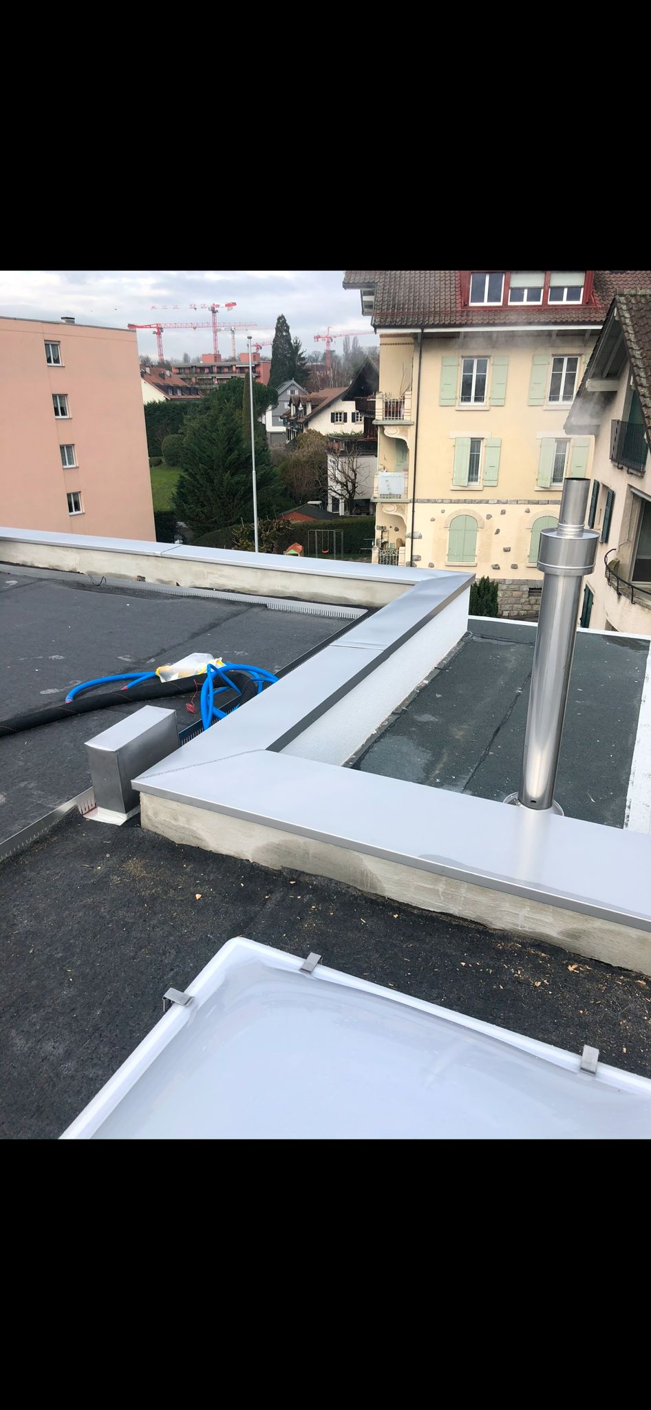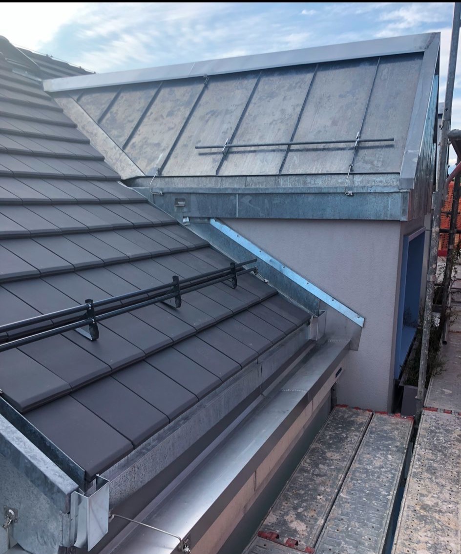 "Couverture en tuiles mécaniques avec raccords en zinc galvanisé"